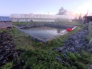 Nous avons ressorti le filet ensuite pour écumer la surface de l’eau et extraire les algues en perdition (qui semblent réapparaître chaque jour!…).