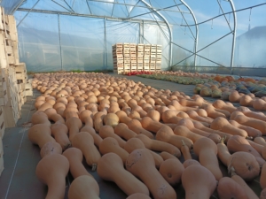 La récolte des courges est tout de même bien avancée, et le premier bilan est plutôt positif, avec des courges nombreuses et de bonne taille (cf photo du jour : on récolte, on fait sécher, puis on met en caisse par calibre pour le stockage).